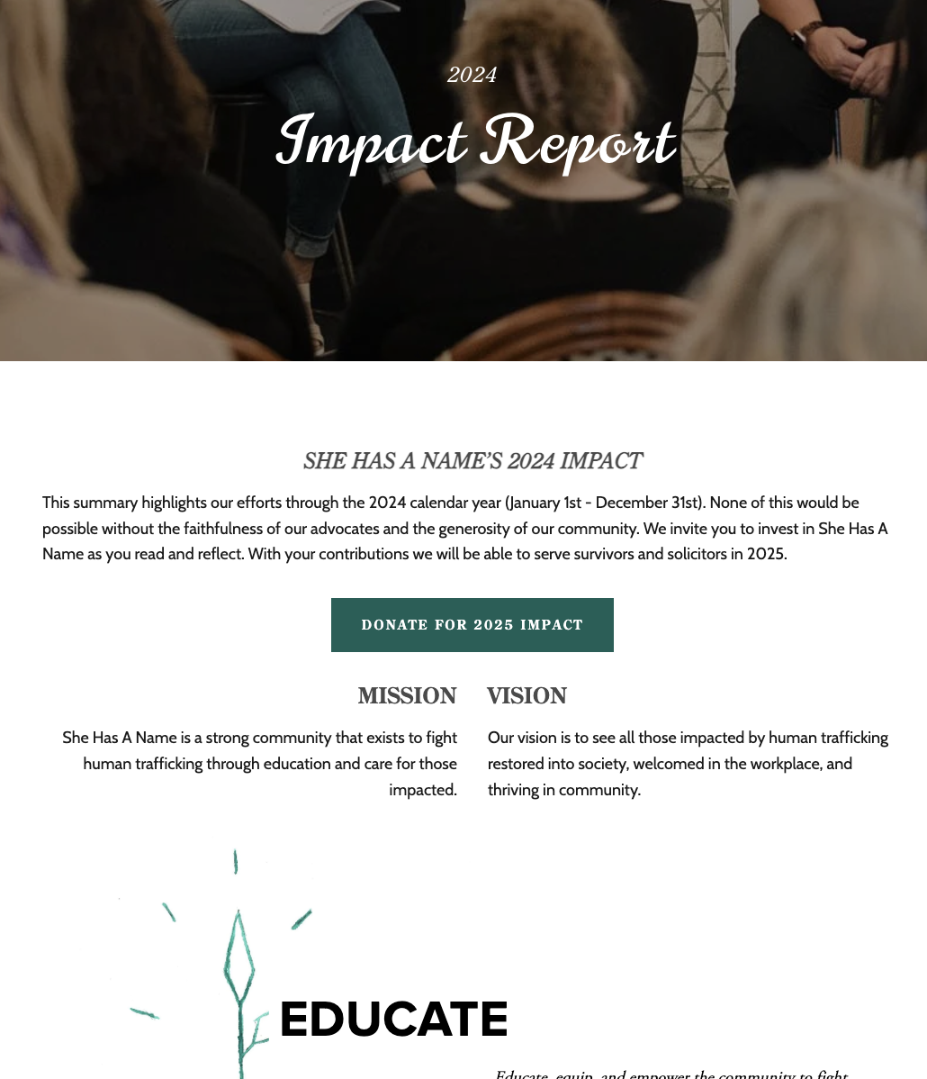 6 survivors of human trafficking attended She Has A Name’s Dream Sessions in September and March to discover what comes next. 3 Dream Scholarships were awarded for a total of $6,000. Two published books, one took her first ever family vacation, and another got promoted at work and is relocating to launch a new branch.
